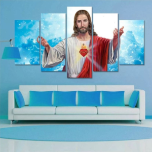 Painel Quadro Mosaico 5 Partes Jesus Cristo Coraçao 6mm Hd