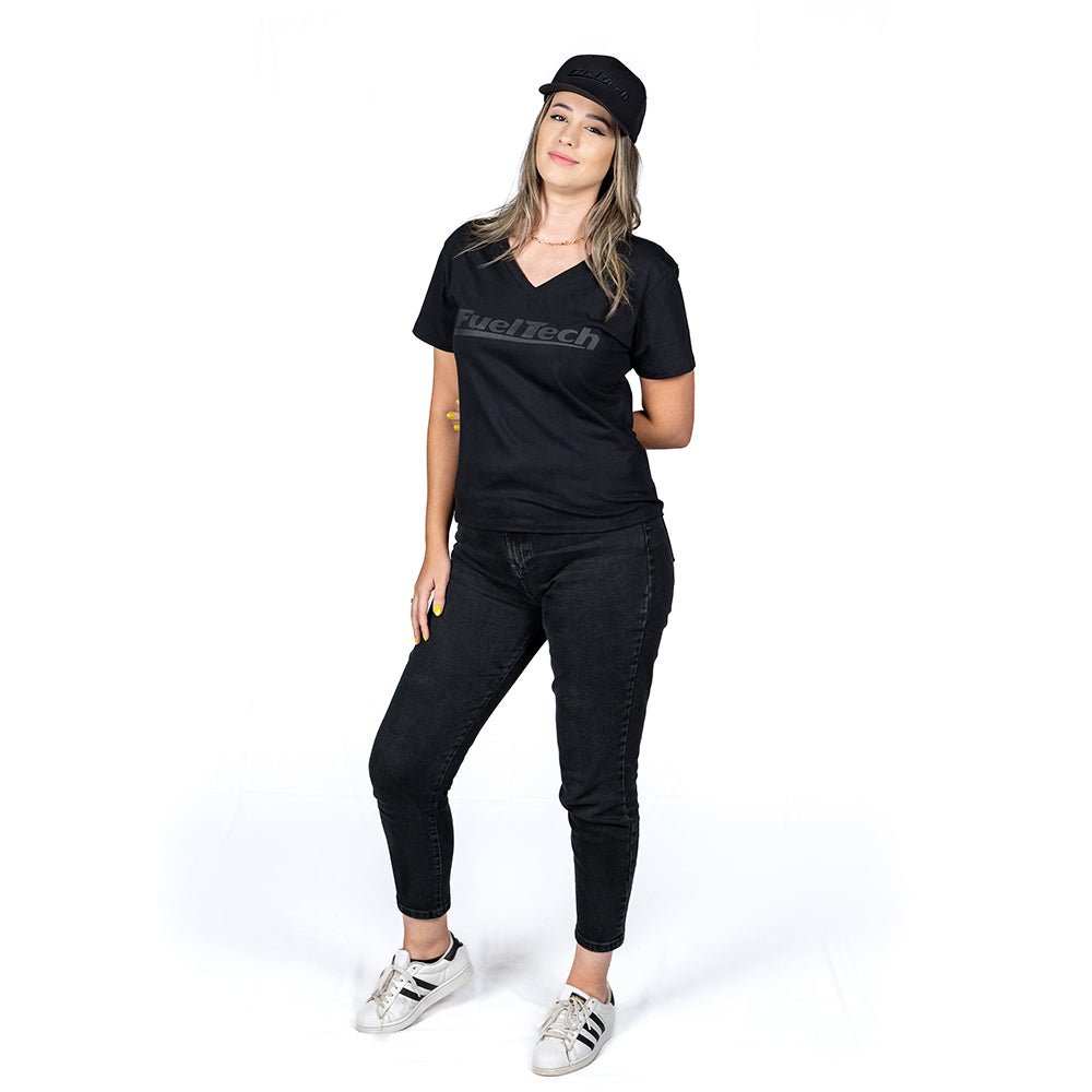 - Camiseta Preta Carbono, tem Composição em 100% algodão, modelagem baby look com manga curta com duas dobras e gola redonda.