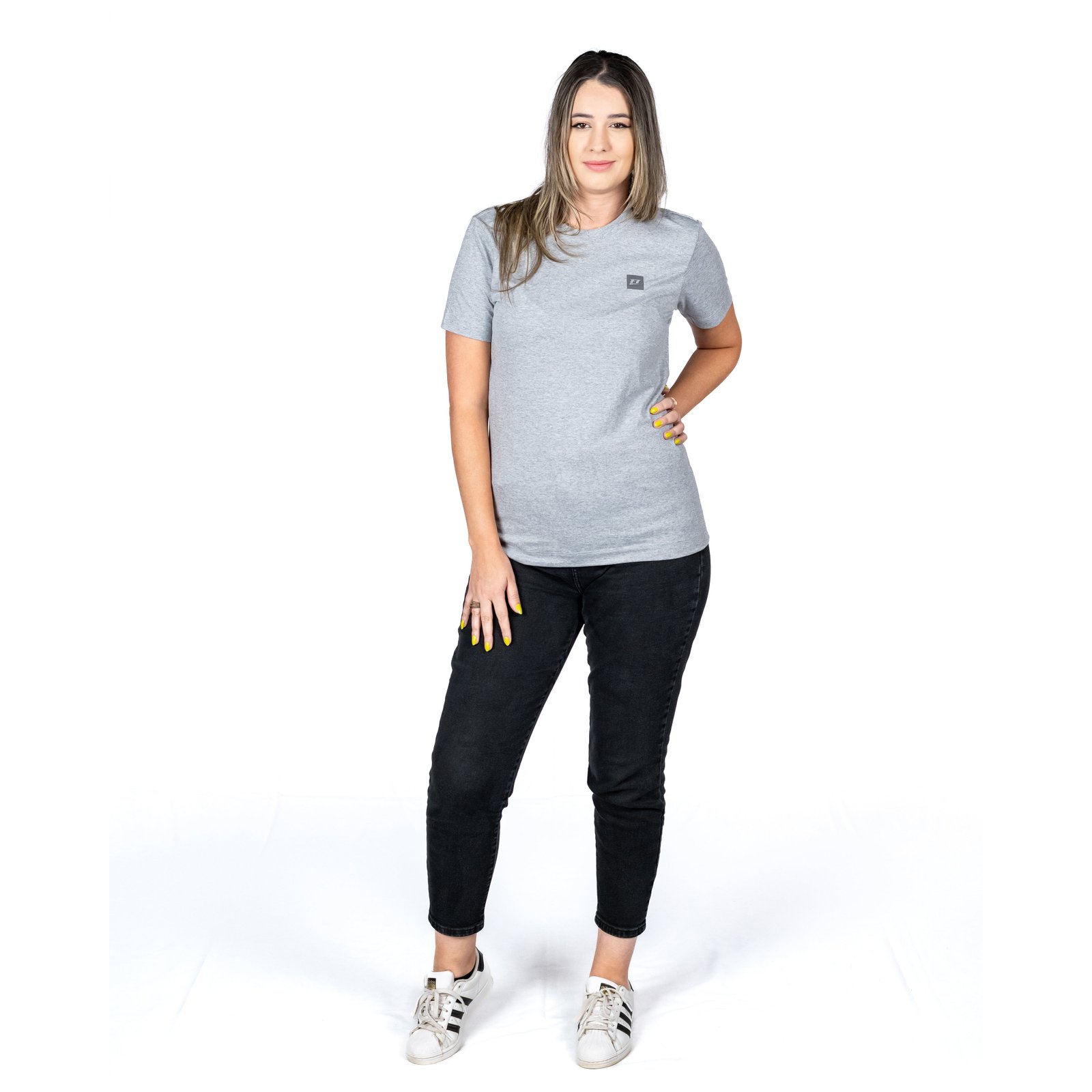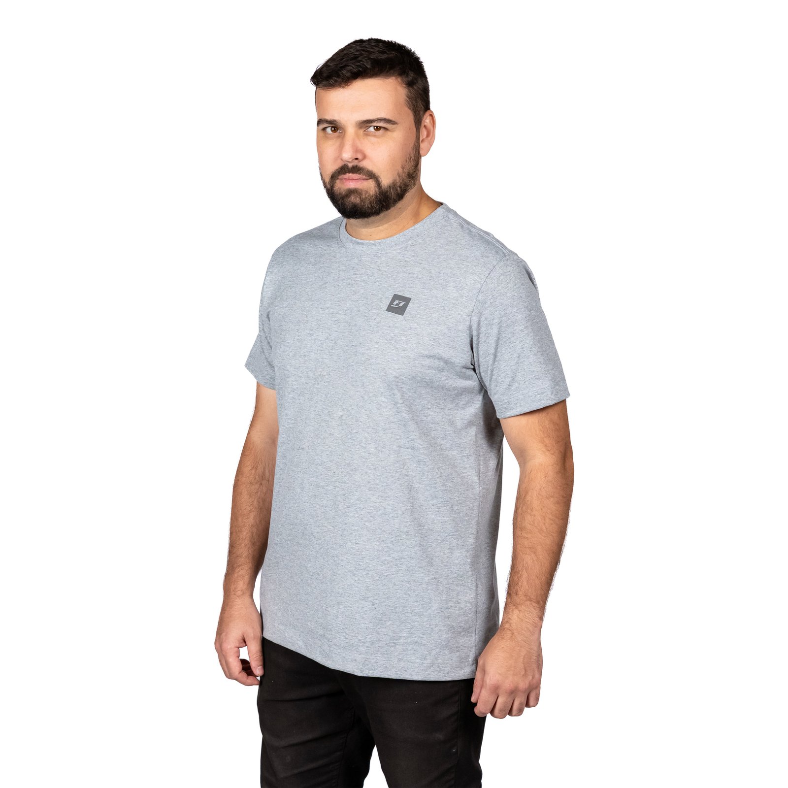 Camiseta FTLITE, tem Composição em tecido cinza mescla 88% ALGODÃO + 12% POLIÉSTER, manga curta e gola redonda.