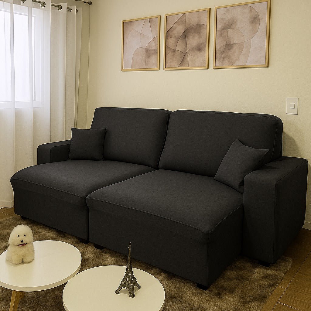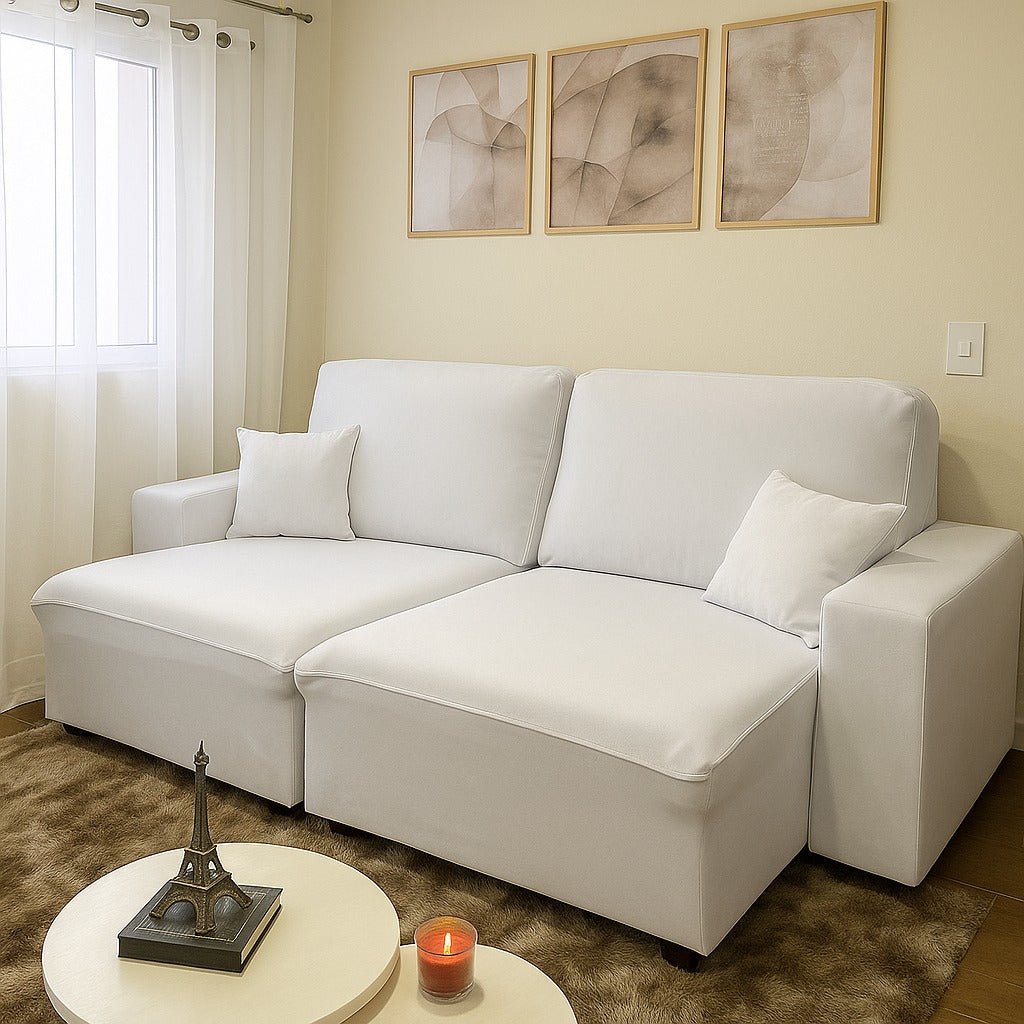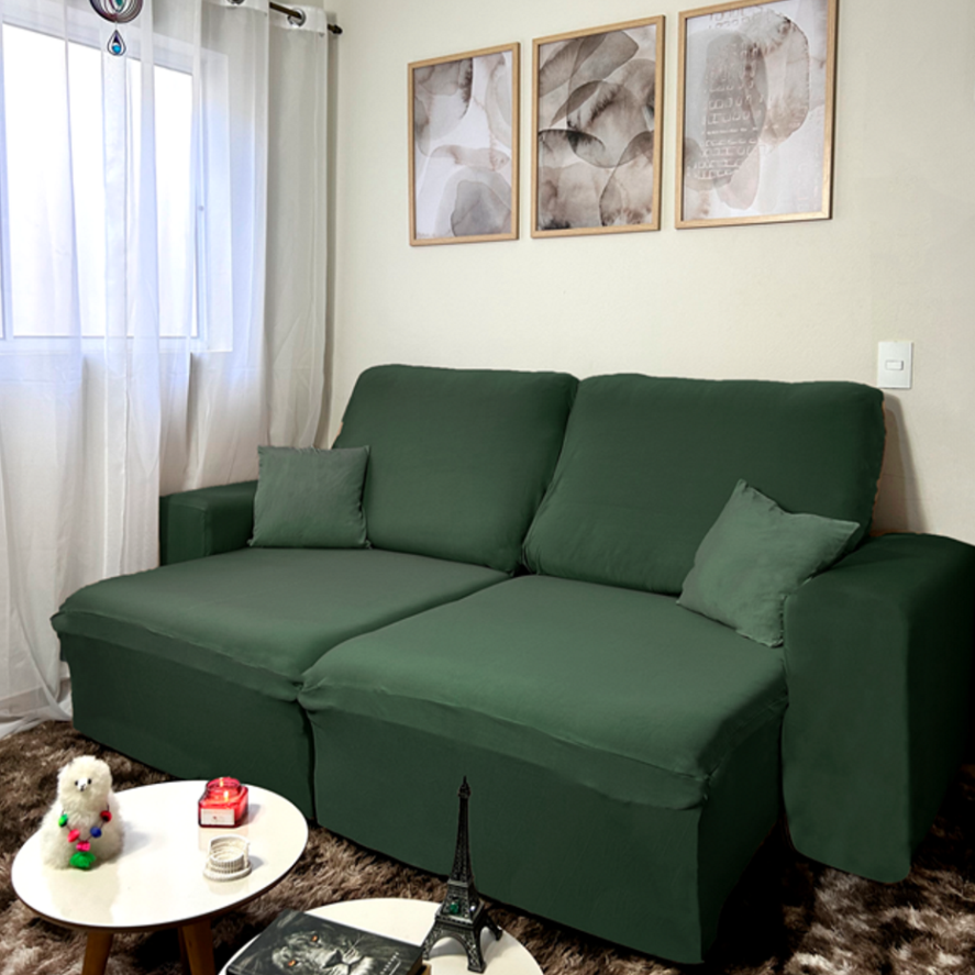 Atendemos aos pedidos dos nossos clientes e agora oferecemos uma capa de sofá retrátil única no mercado, que cobre completamente o sofá, podendo ser usada aberta ou fechada. Além disso, acompanha duas capas de almofadas.