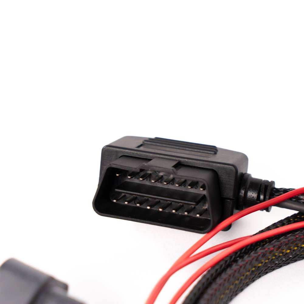 O chicote OBD-II da NanoPRO facilita a instalação e comunicação com a porta OBD-II do veículo.