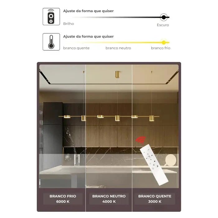 Como usar: Acima da mesa de centro ou próximo ao sofá